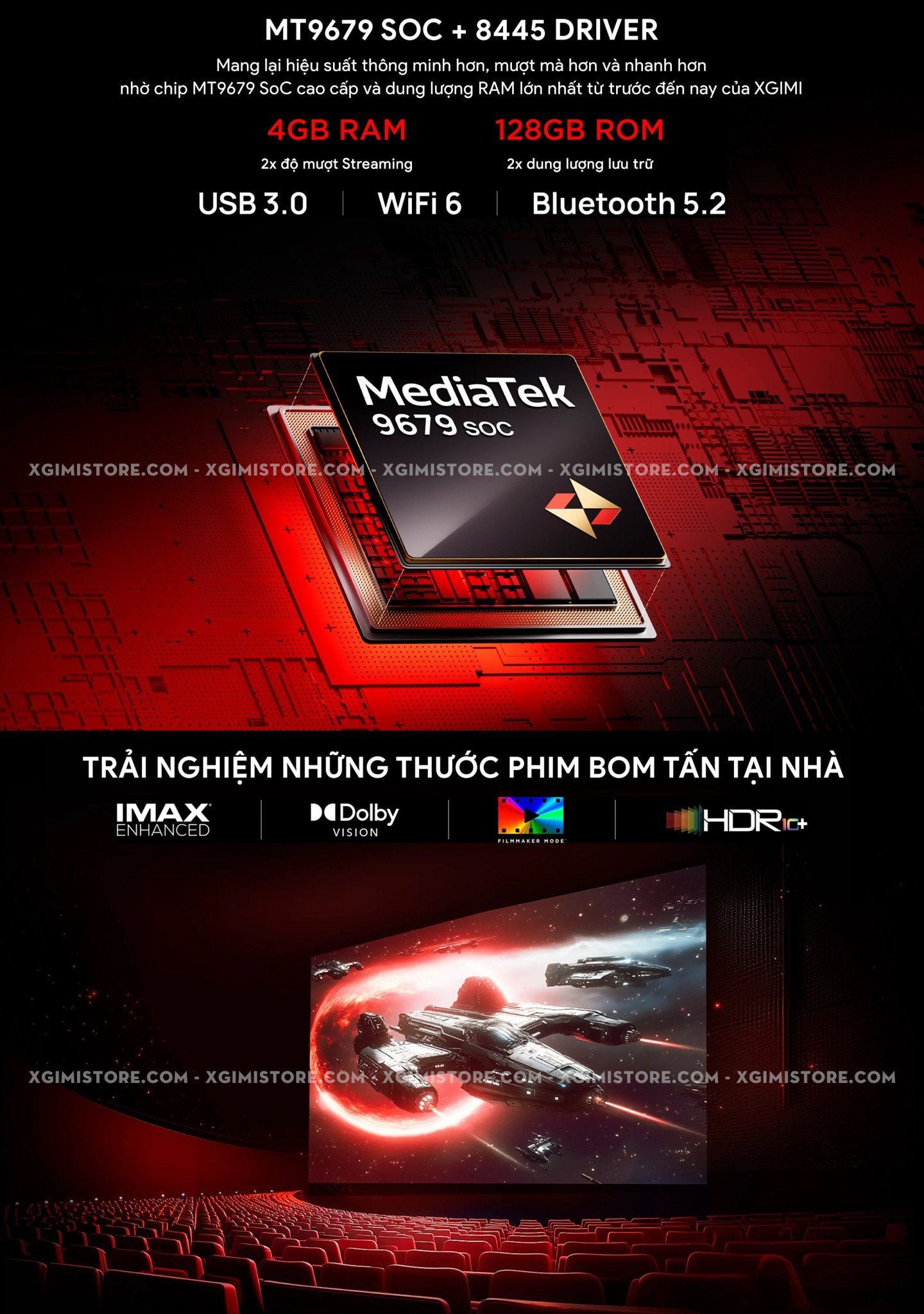 | Hệ điều hành | Google TV - Fast Boot Mirroring Display - DLNA/GoogleCast CPU MT9679 SoC GPU Mali-G52 RAM/ROM - 4GB/128GB |