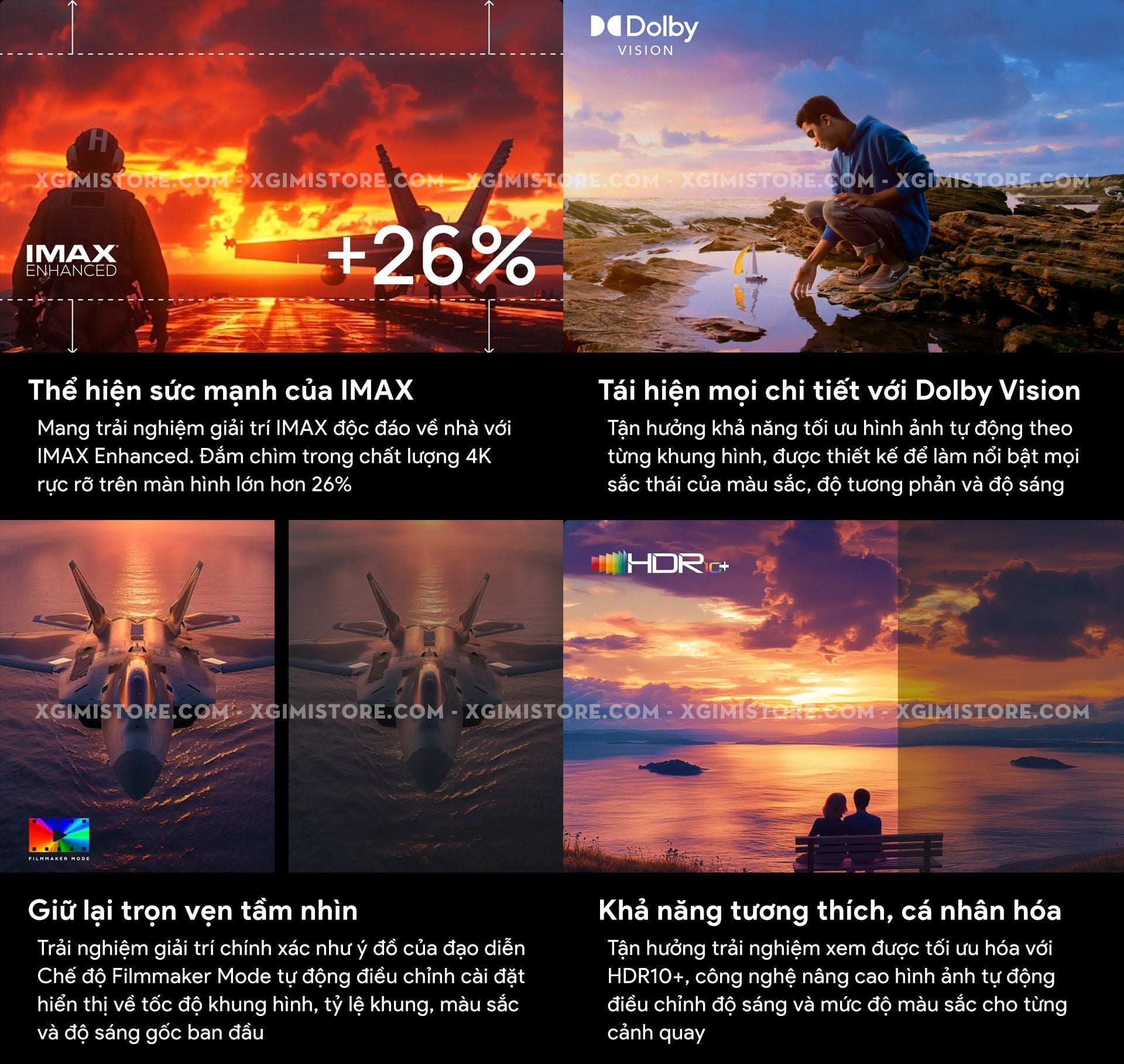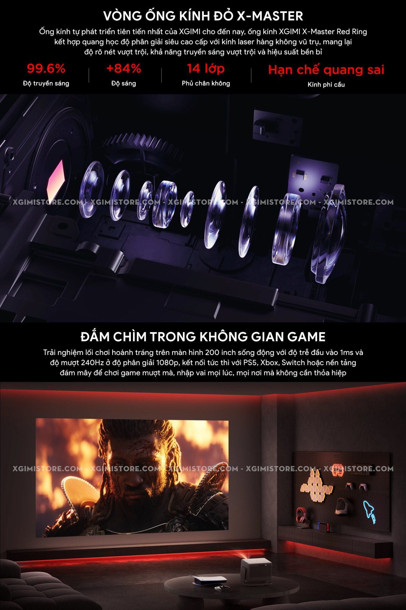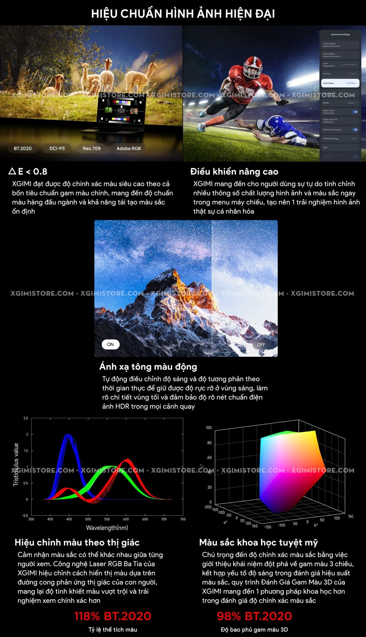| Đặc điểm đặc biệt | Công nghệ RGB Triple Laser Chứng nhận IMAX Enhanced Chứng nhận Dolby Vision Chứng nhận SGS ΔE<0.8 Tích hợp chân gimbal xoay linh hoạt Hỗ trợ Lens Shift V±120%/H±45% Hỗ trợ Zoom Quang học và Zoom Kỹ thuật số ISA 5.0 Uninterrupted Auto Keystone: tự động chỉnh méo hình không gián đoạn ISA 5.0 Auto Focus: tự động lấy nét ISA 5.0 Intelligent Screen Alignment: Tự động khớp khung hình màn chiếu ISA 5.0 Intelligent Obstacle Avoidance: Tự động nhận diện vật cản ISA 5.0 Intelligent Eye Protection: Bảo vệ mắt thông minh ISA 5.0 Wall Color Adaptation: Hiệu chỉnh màu sắc theo màu tường chiếu High Dynamic Range - HDR10+ Bù trừ chuyển động MEMC Dynamic Tone Mapping: Tối ưu hóa Ánh xạ tông màu động Game Mode 1ms Input Lag, up to 240Hz Variable Refresh Rate: tự động điều chỉnh tần số làm mới để đồng bộ với tốc độ khung hình (FPS) Hỗ trợ trình chiếu 3D |