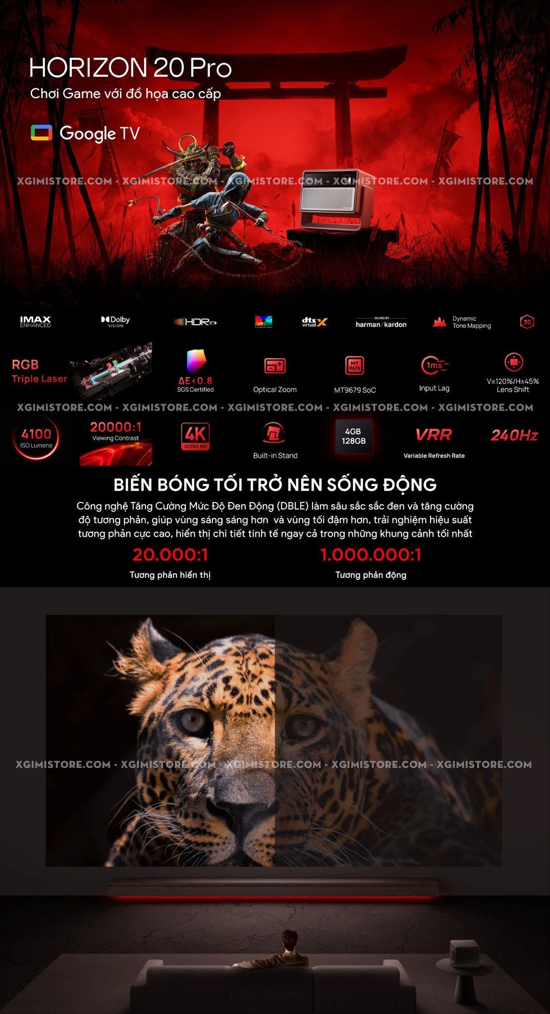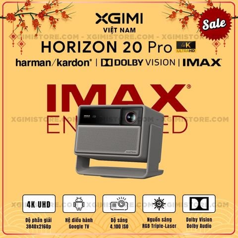 Xgimi Horizon 20 Pro - Máy chiếu 4K thông minh tích hợp Google TV, sử dụng công nghệ RGB Triple Laser, độ phân giải chuẩn 4K UHD, độ sáng 4100 ISO Lumens, đạt chứng nhận IMAX Enhanced & Dolby Vision và tích hợp loa Harman Kardon