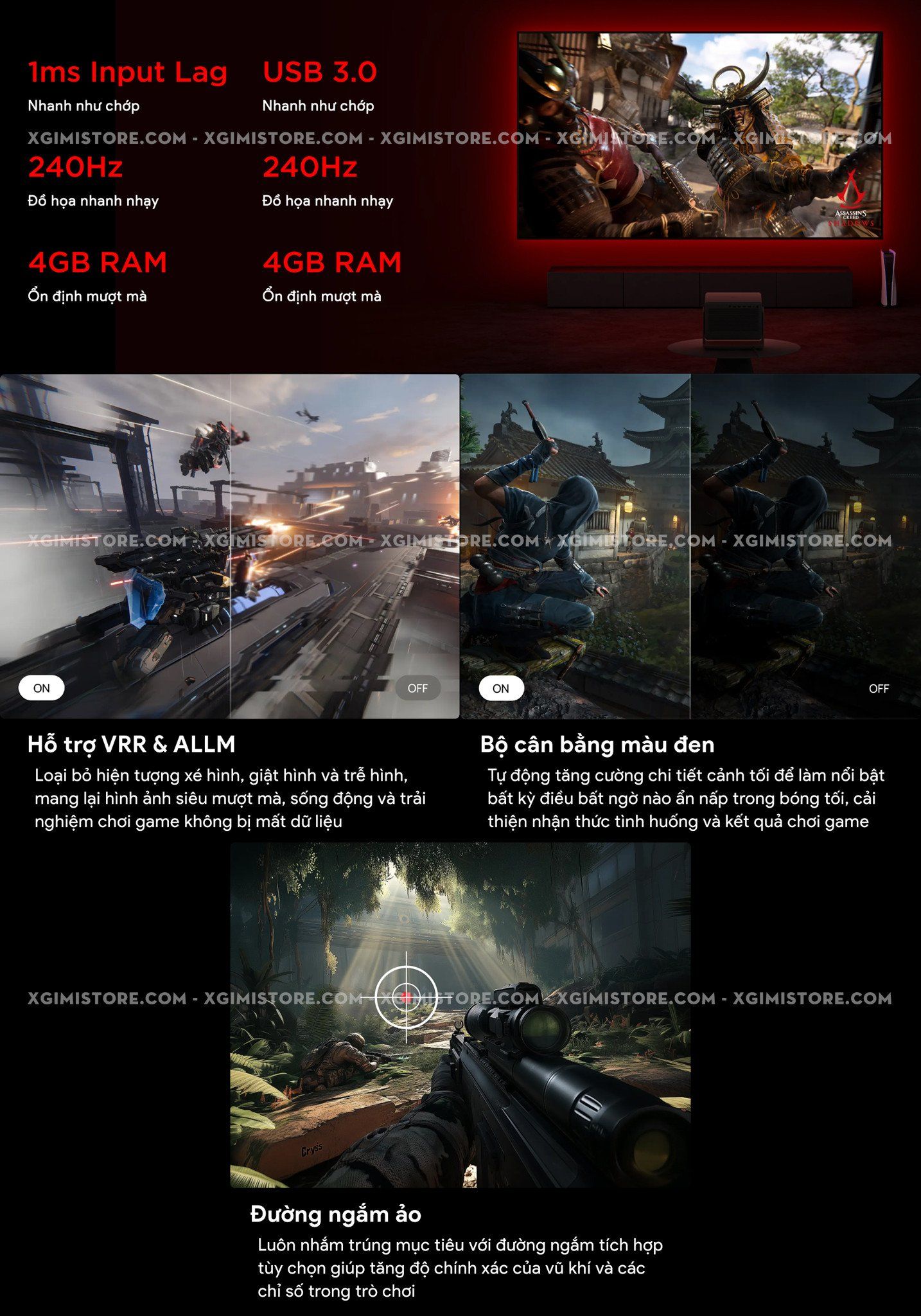 | Game Mode | 1ms at 1080P@240Hz 2.2ms at 1080P@120Hz 3ms at 4K @60Hz |